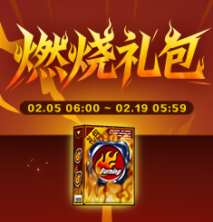 燃烧礼包限时开启兑换!打开“燃烧礼包”可获得包括“道具变更卡使用券(30天)”、“道具换位卡使用券(30天)”、“更名卡(1个)”、“双倍经验卡(30天)”、“双倍金币卡(30天)”在内的所有道具,切勿错过!